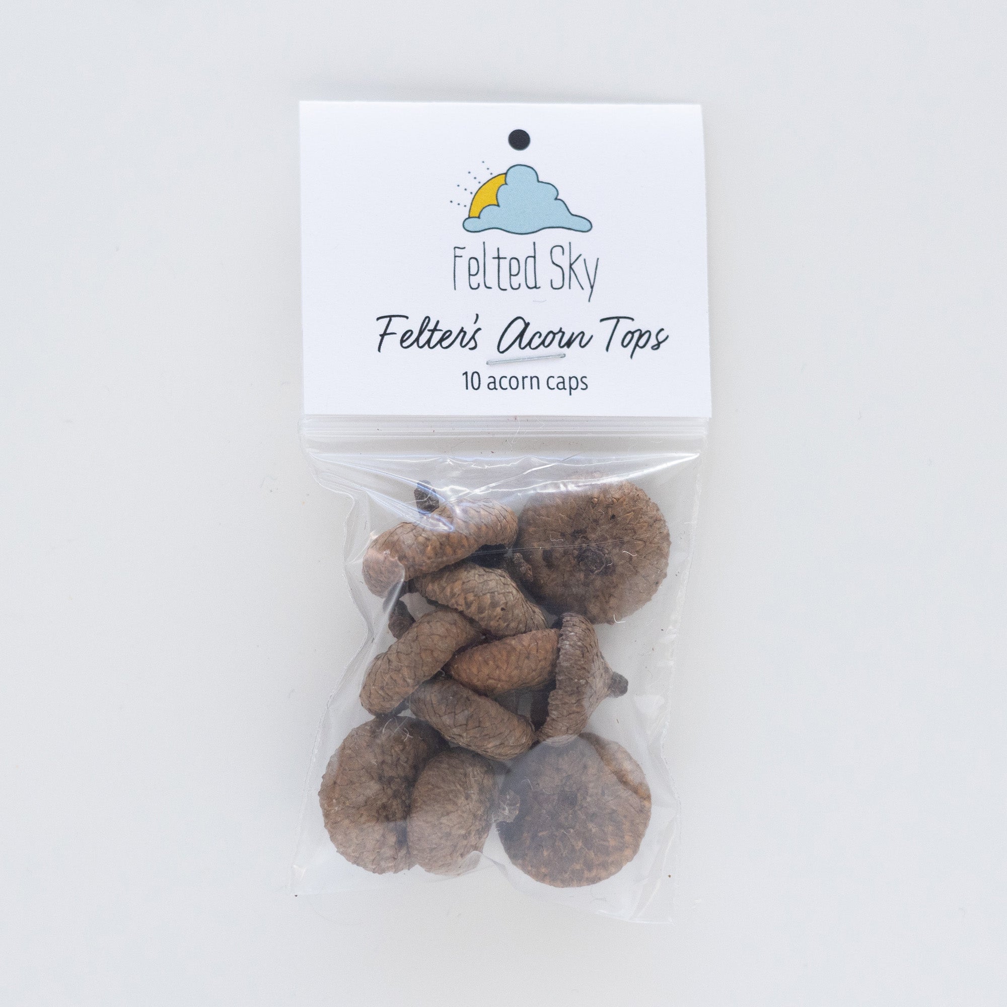 Want to make felted acorns? These are the same tops that are in our Fall Leaves & Acorns Kit. Now you can purchase them separately! Each package contains 10 real acorn tops. These are natural and sizes vary within each package.