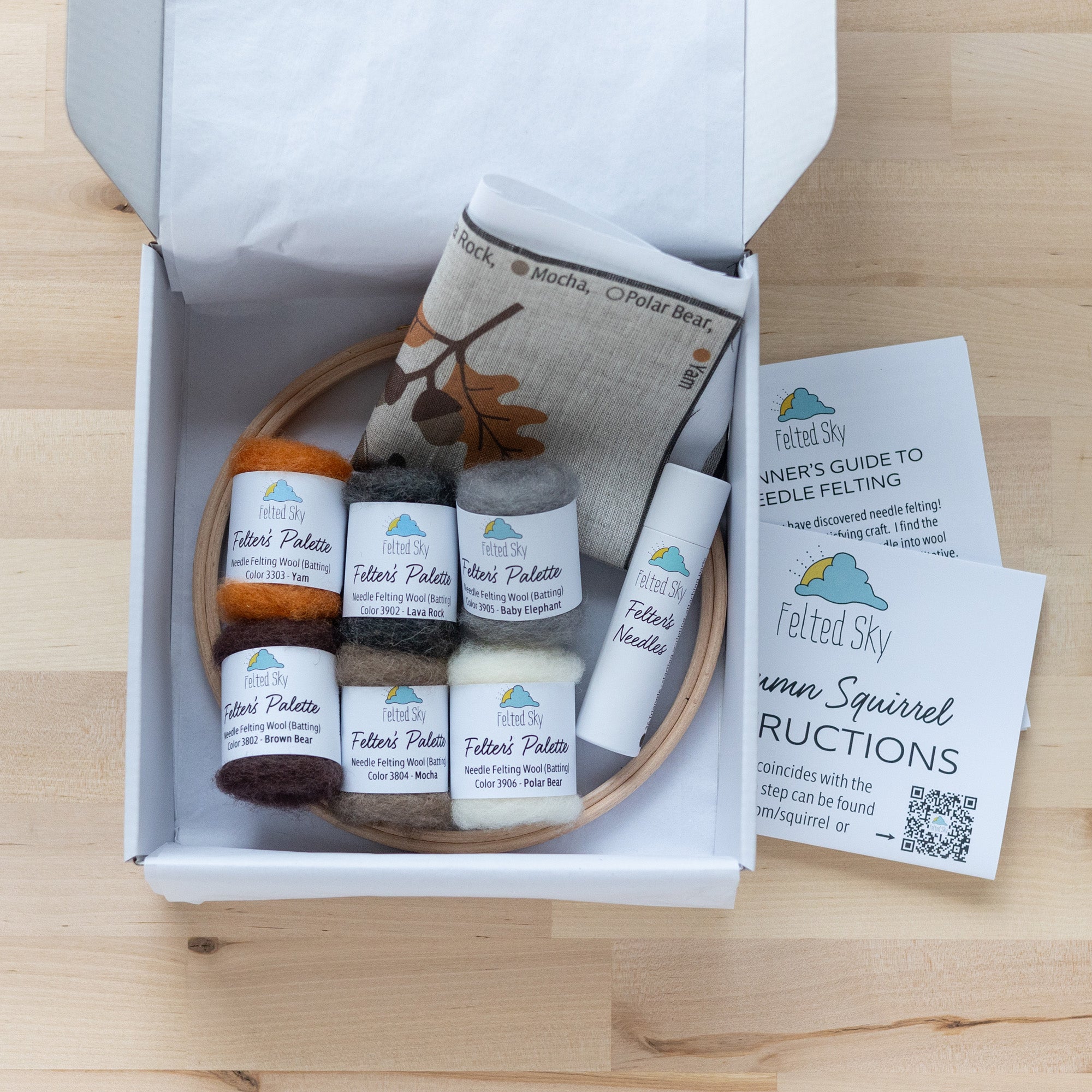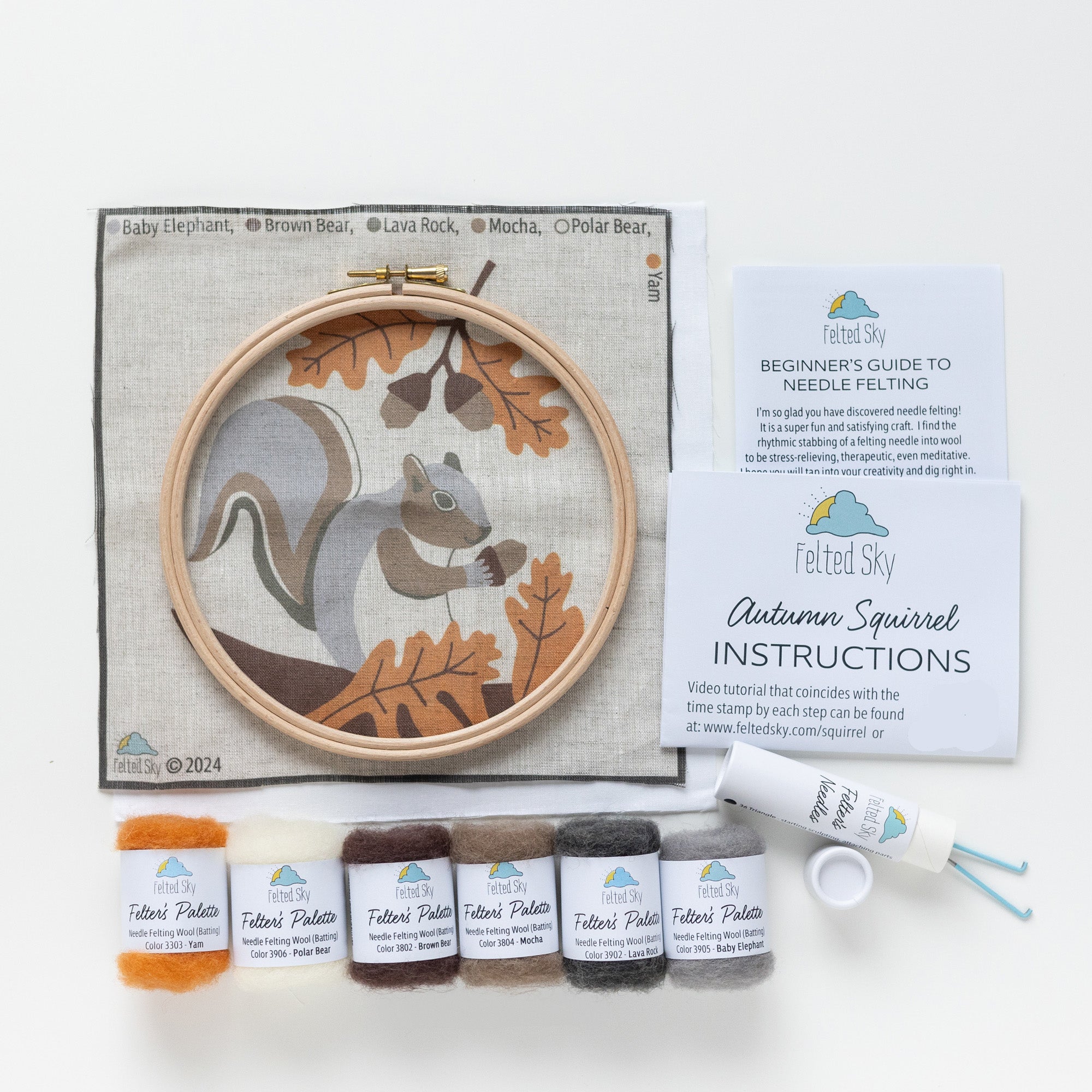 This gray squirrel is an enjoyable way to ease into flat needle felting. Simply fill in the printed fabric picture with wool, similar to working with an embroidery or cross-stitch pattern. This is the felting equivalent of paint-by-number. Display it as part of your fall decor!