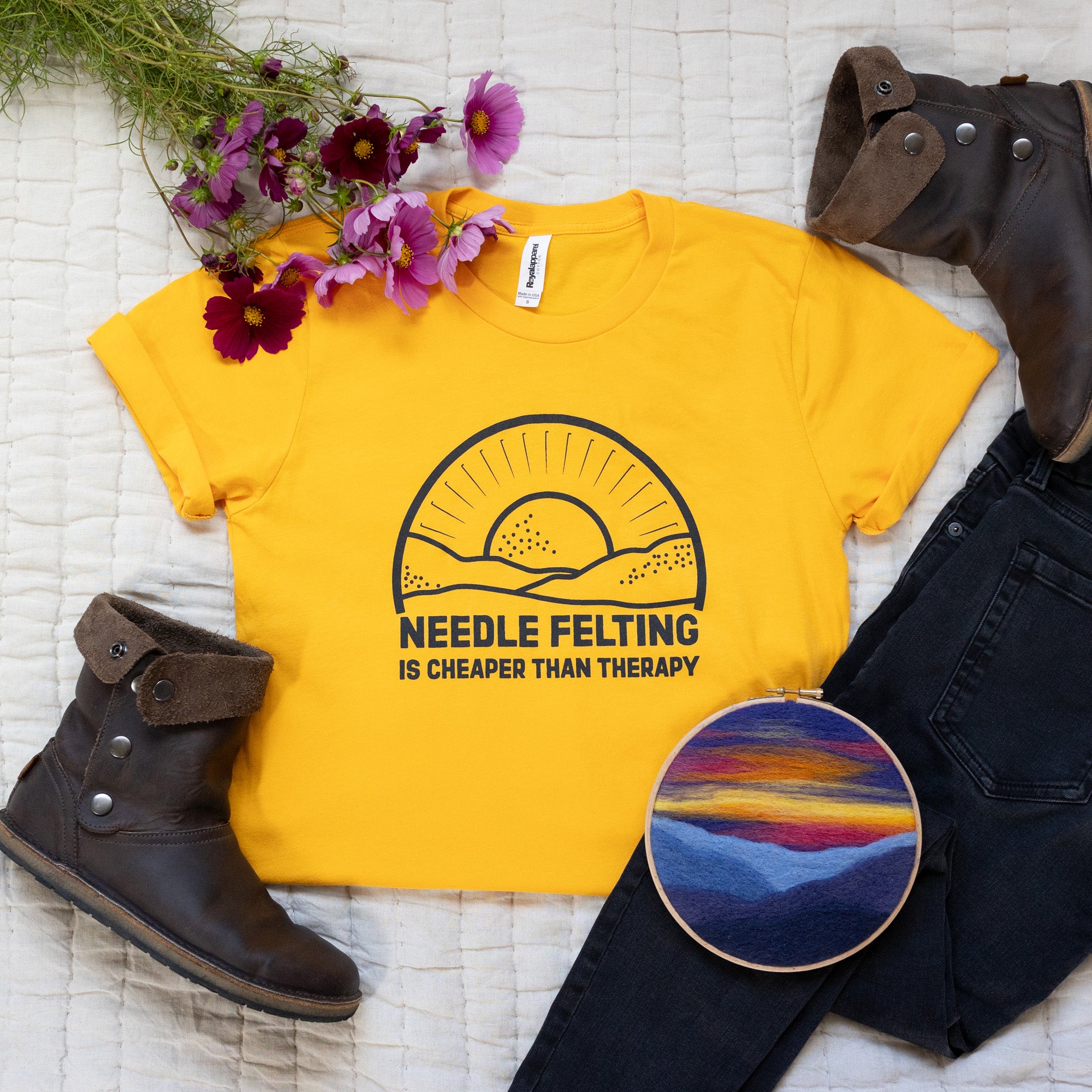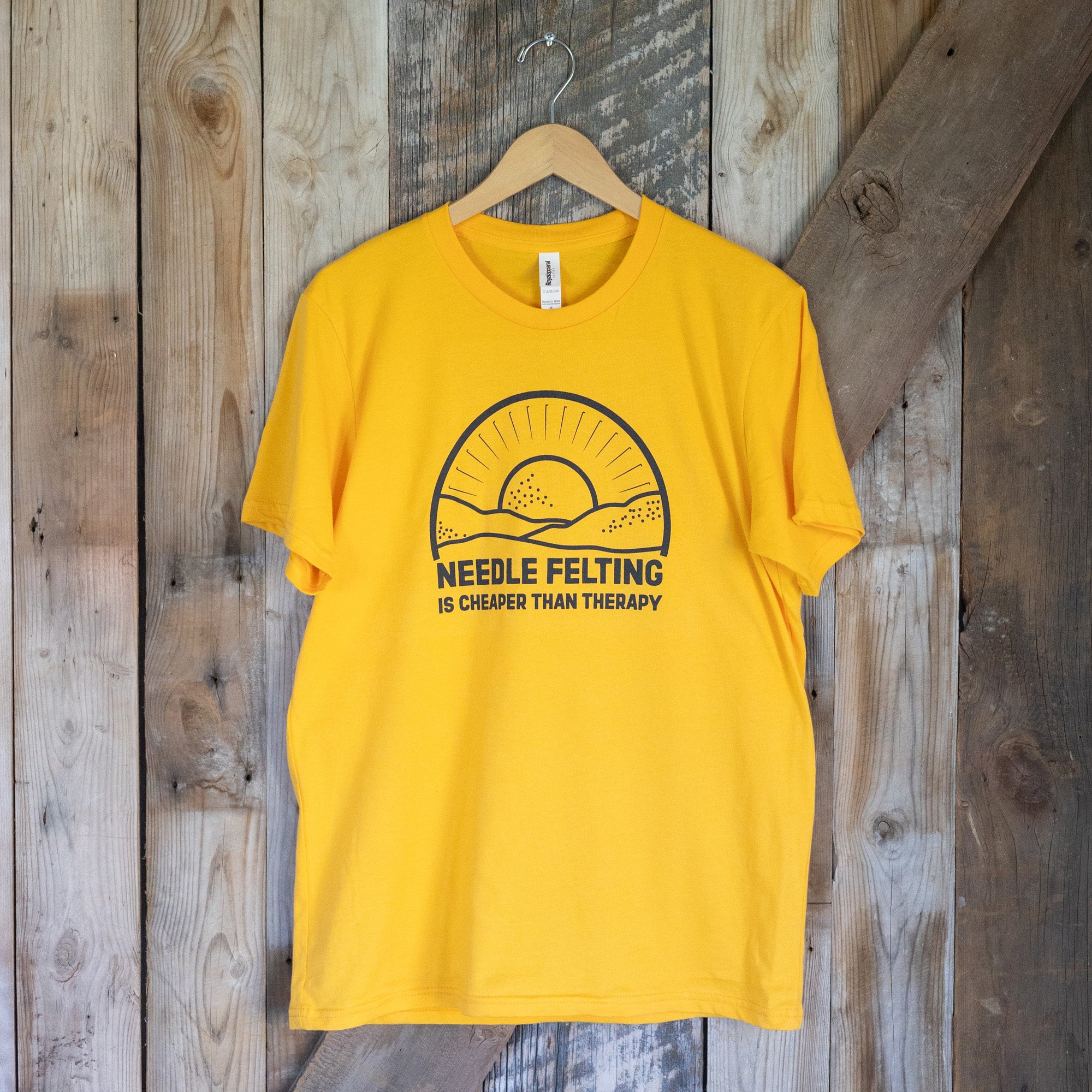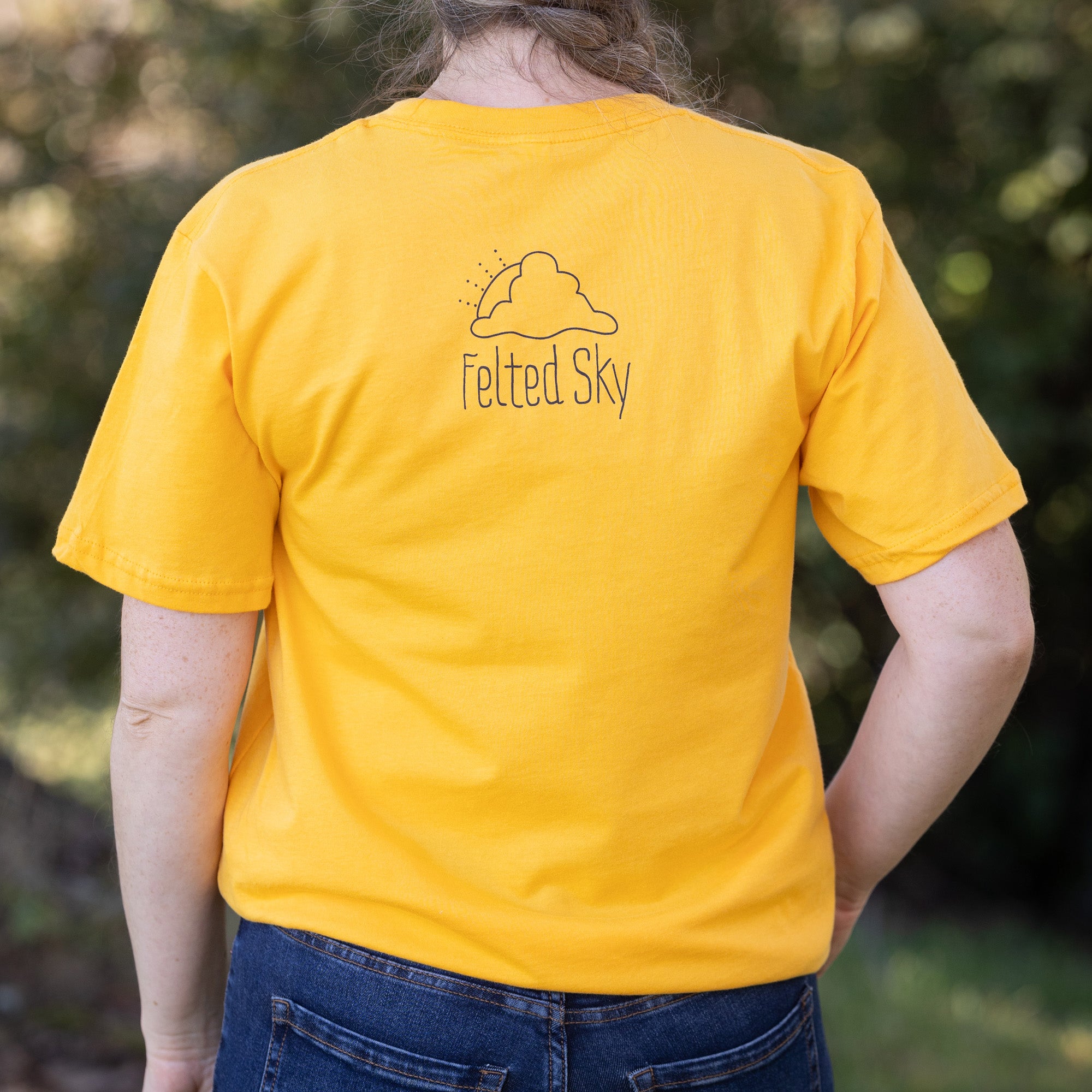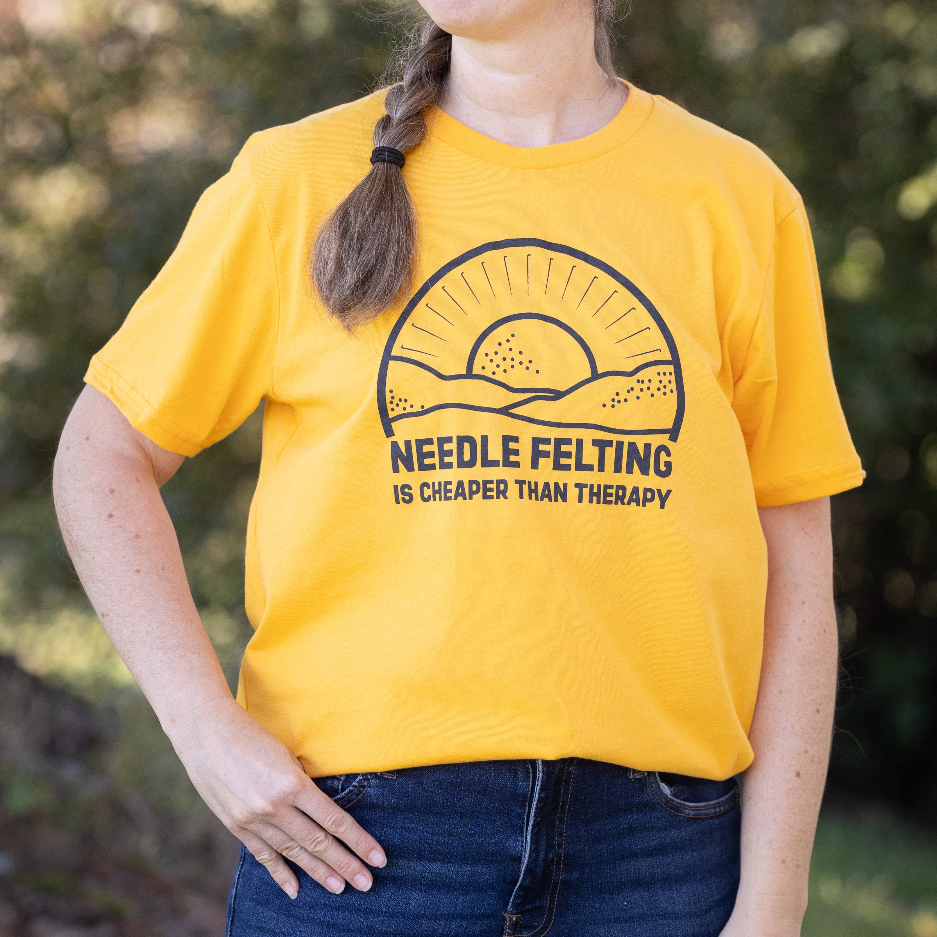 We're very pleased with our first batch of shirts. They are soft and comfortable and sporting some fun needle felting humor in three different designs.