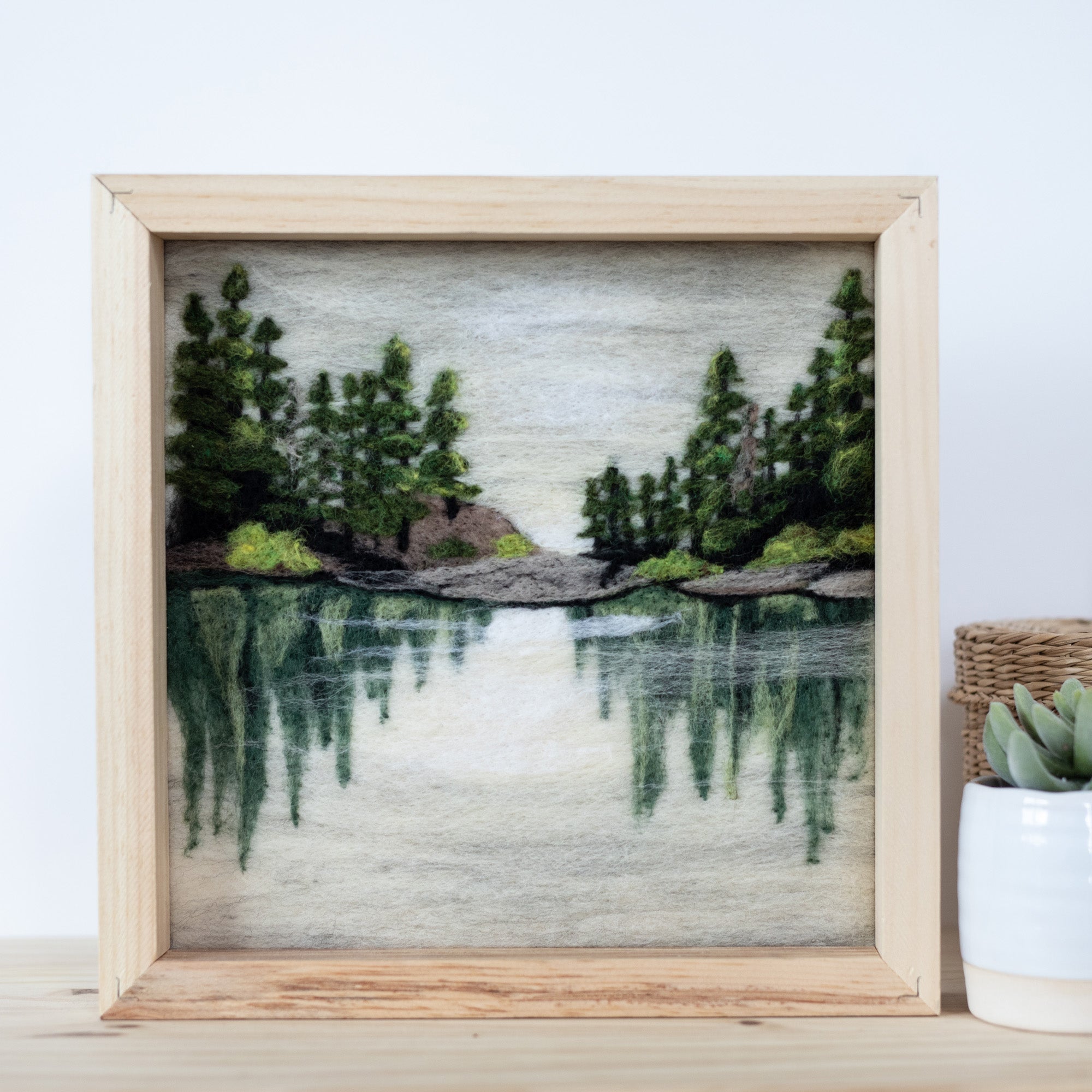 This is an unfinished pine wood frame, the same one used in our Lake Reflections needle felting kit. Now you can create your own pictures and have an easy way to frame them. It can be painted or stained or used as-is.