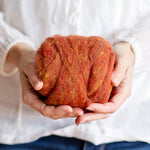 This is a beautiful and fluffy needle felting wool that comes in in gorgeous colors. It has a bit of texture to it, and almost all of the shades are heathered, with flecks of other colors running through them. We use this wool in many of our needle felting kits. It is particularly suited to becoming plants, trees, and little animals.
