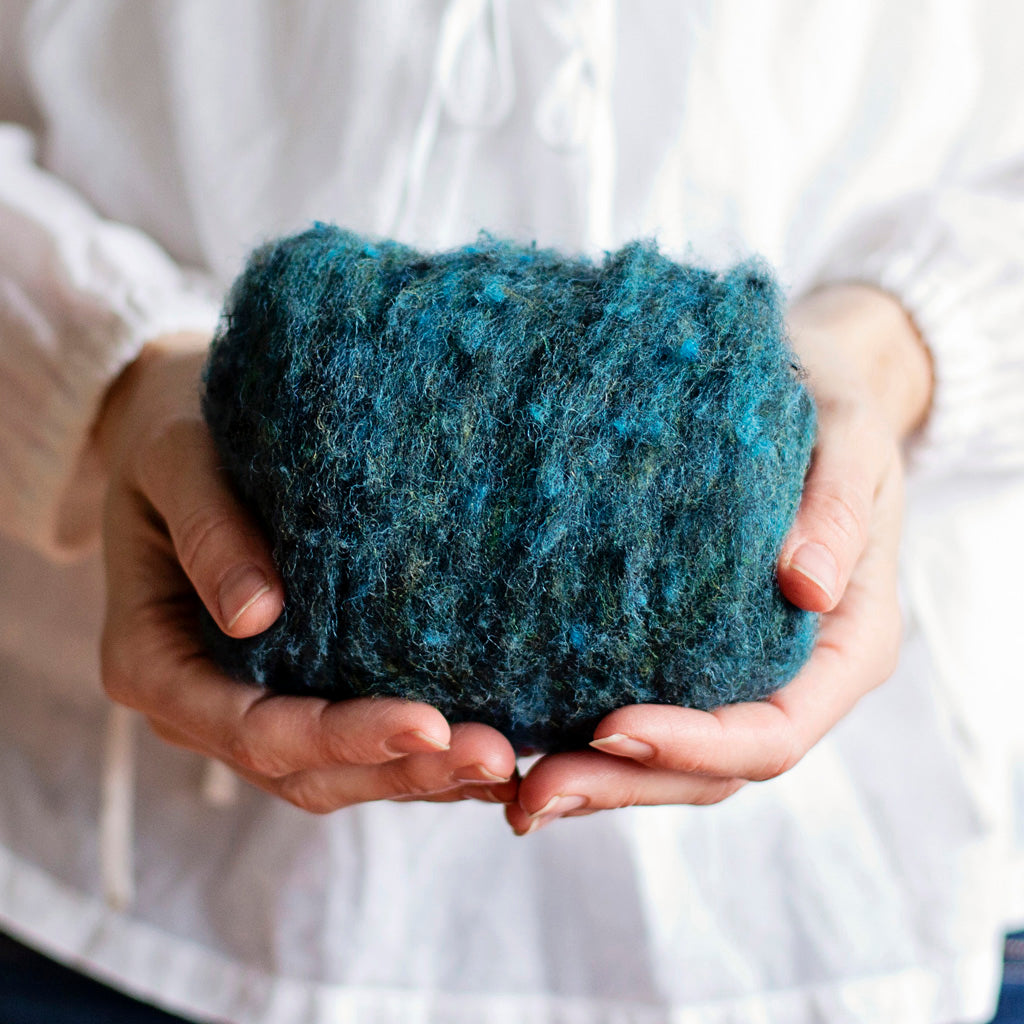 This is a beautiful and fluffy needle felting wool that comes in in gorgeous colors. It has a bit of texture to it, and almost all of the shades are heathered, with flecks of other colors running through them. We use this wool in many of our needle felting kits. It is particularly suited to becoming plants, trees, and little animals.