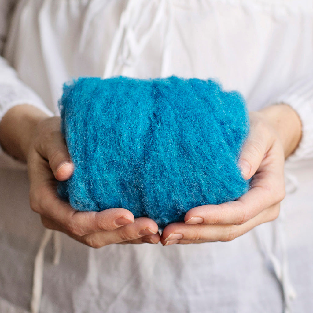 This is a beautiful and fluffy needle felting wool that comes in in gorgeous colors. It has a bit of texture to it, and almost all of the shades are heathered, with flecks of other colors running through them. We use this wool in many of our needle felting kits. It is particularly suited to becoming plants, trees, and little animals.