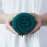 This needle felting wool batting is fairly soft, with a short staple length and hardly any vegetable matter. It is very uniform and really lovely to work with.