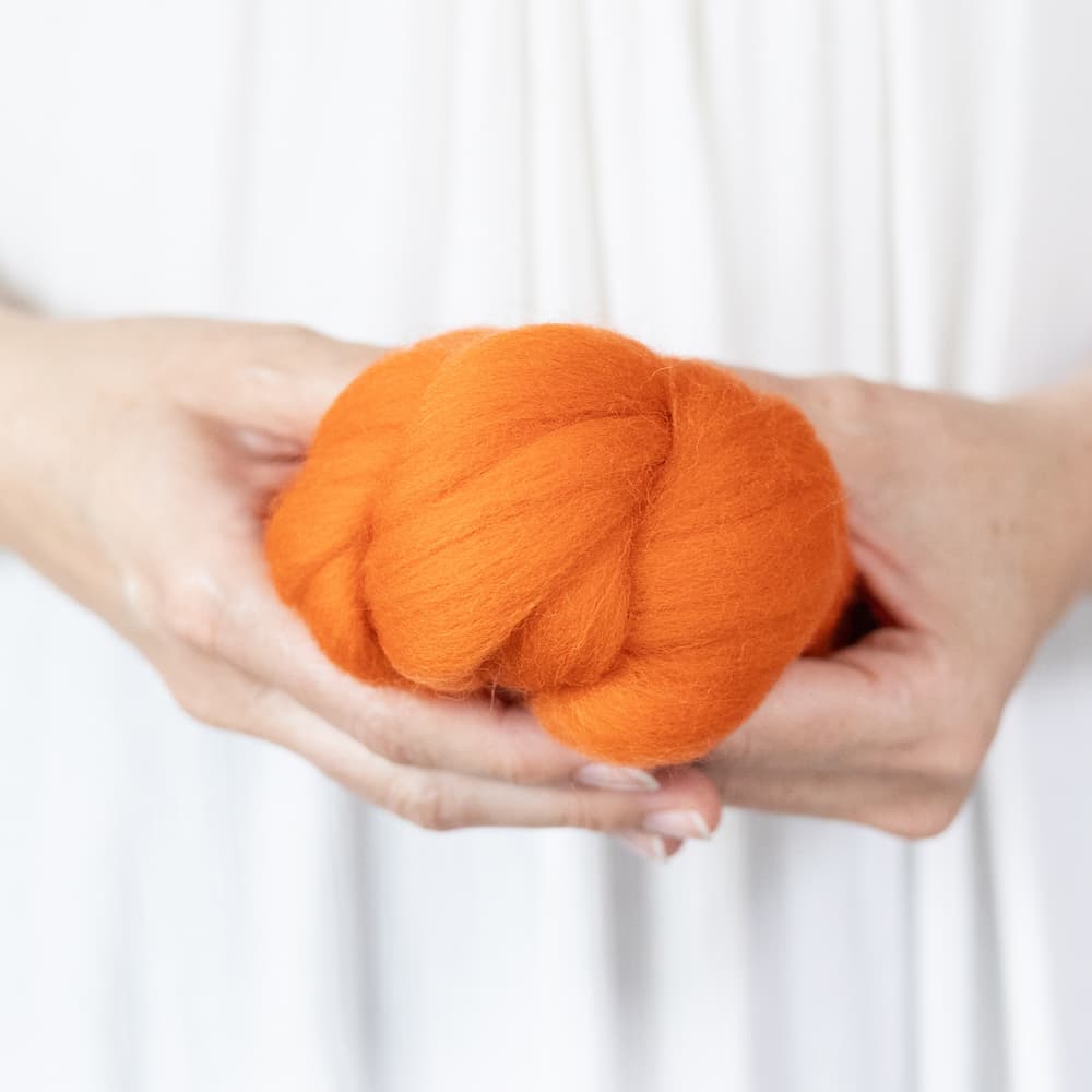 It has a longer staple length than our wool batting, and we love it for making pumpkins, sky, water, grasses, thin lines, and any kind of hair such as beards, manes and tales, animal fur, and more!
