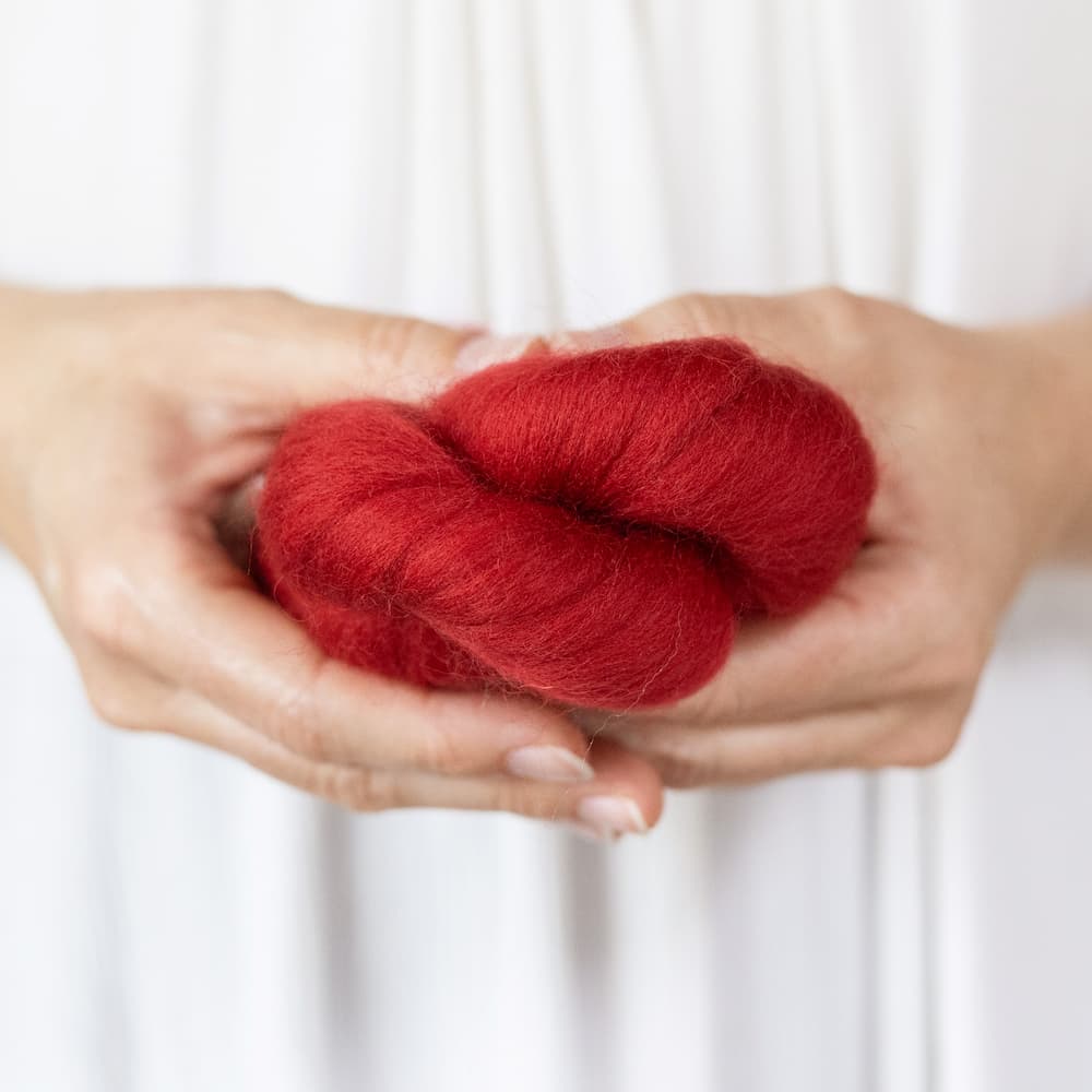 This is a beautiful "made in USA" roving. It is soft with hardly any vegetable matter in it and it felts well. The fiber is American Rambouillet wool and it comes to us from a family run mill in Nebraska where it is dyed and processed.