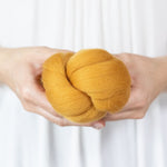It has a longer staple length than our wool batting, and we love it for making pumpkins, sky, water, grasses, thin lines, and any kind of hair such as beards, manes and tales, animal fur, and more!