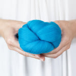 This is a beautiful "made in USA" roving. It is soft with hardly any vegetable matter in it and it felts well. The fiber is American Rambouillet wool and it comes to us from a family run mill in Nebraska where it is dyed and processed.