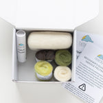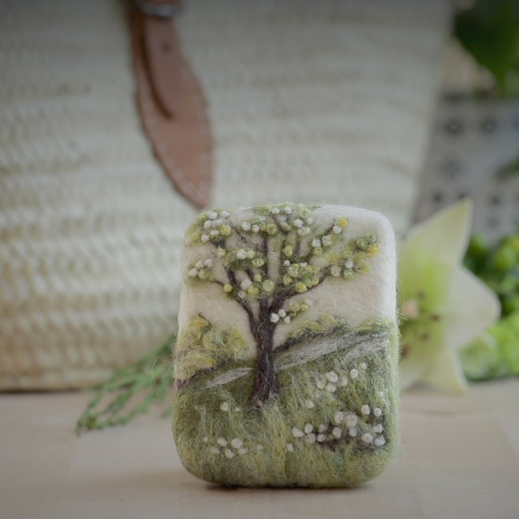 This needle felting kit includes everything needed to make one beautiful yet petite spring landscape. Perfect for a windowsill, little shelf, or work space. Learn how to "paint with wool" without a big investment.