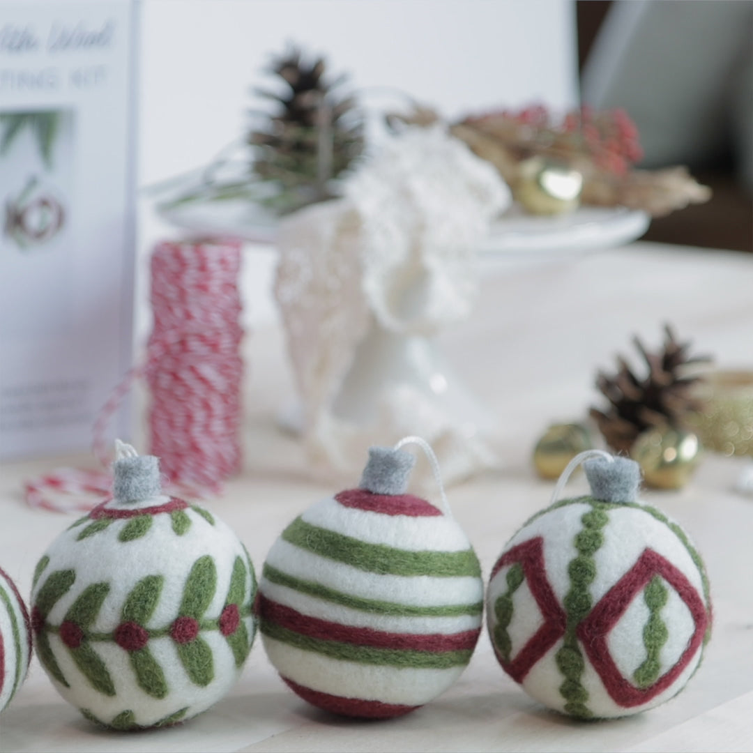 This beginner needle felting project produces four very sweet ornaments. The perfect addition to your DIY holiday decor. This is an excellent first project if you're new to needle felting. The neat thing about this kit is that the wool balls are already formed, so you can jump to the decorating part without having to make the balls from scratch although they will still need to be firmed and smoothed.