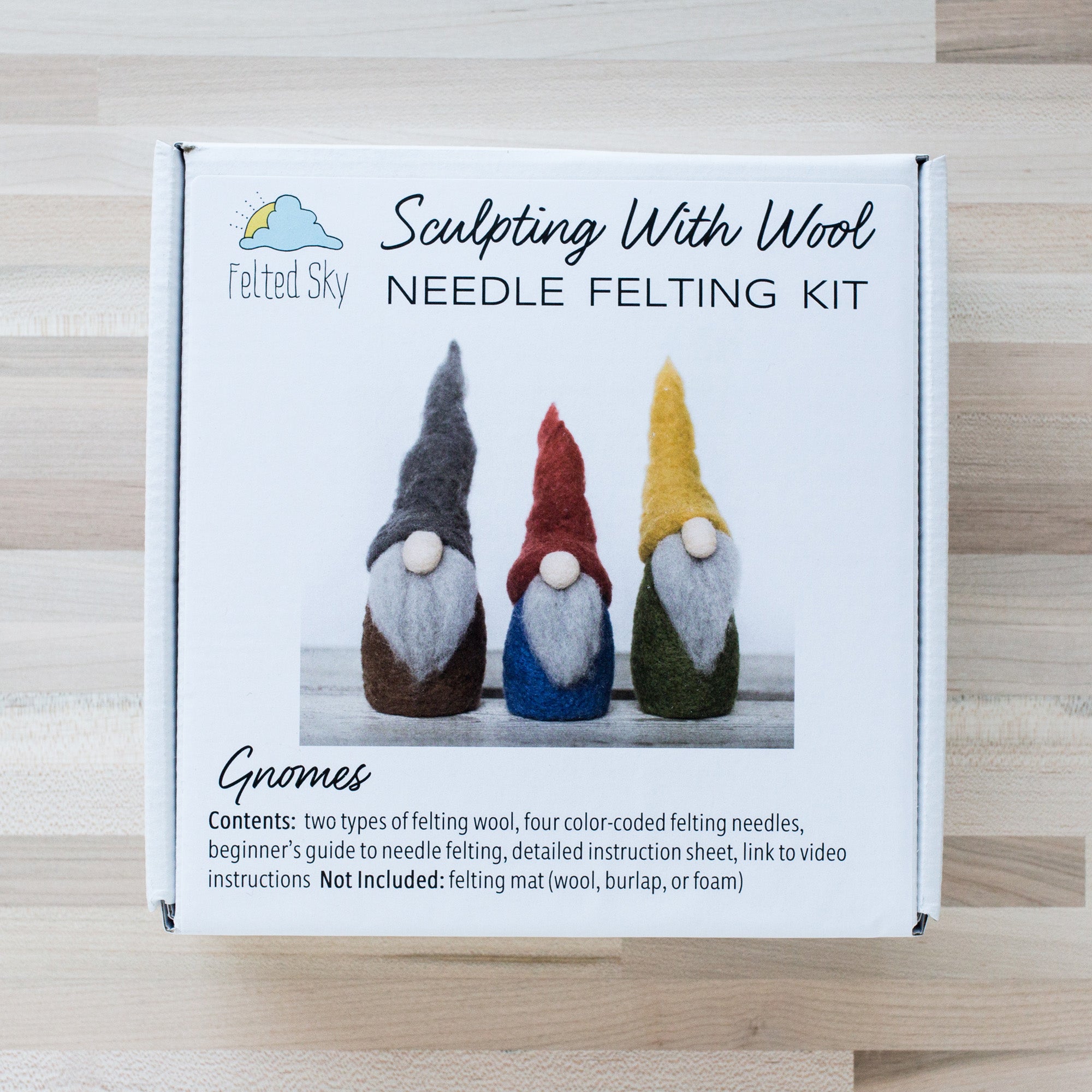A mat to use as a work surface. Choose from foam, burlap, or wool. Once you have a mat, it can be used for many projects (note that foam is the most economical but wears out the fastest).Follow the written and video instructions or deviate and make the gnomes your own by changing their beards, hats, etc. When taught as a class, many students make changes in hat shape, beard/mustache/nose shape, and some people like to add a ball to the end of the hat.
