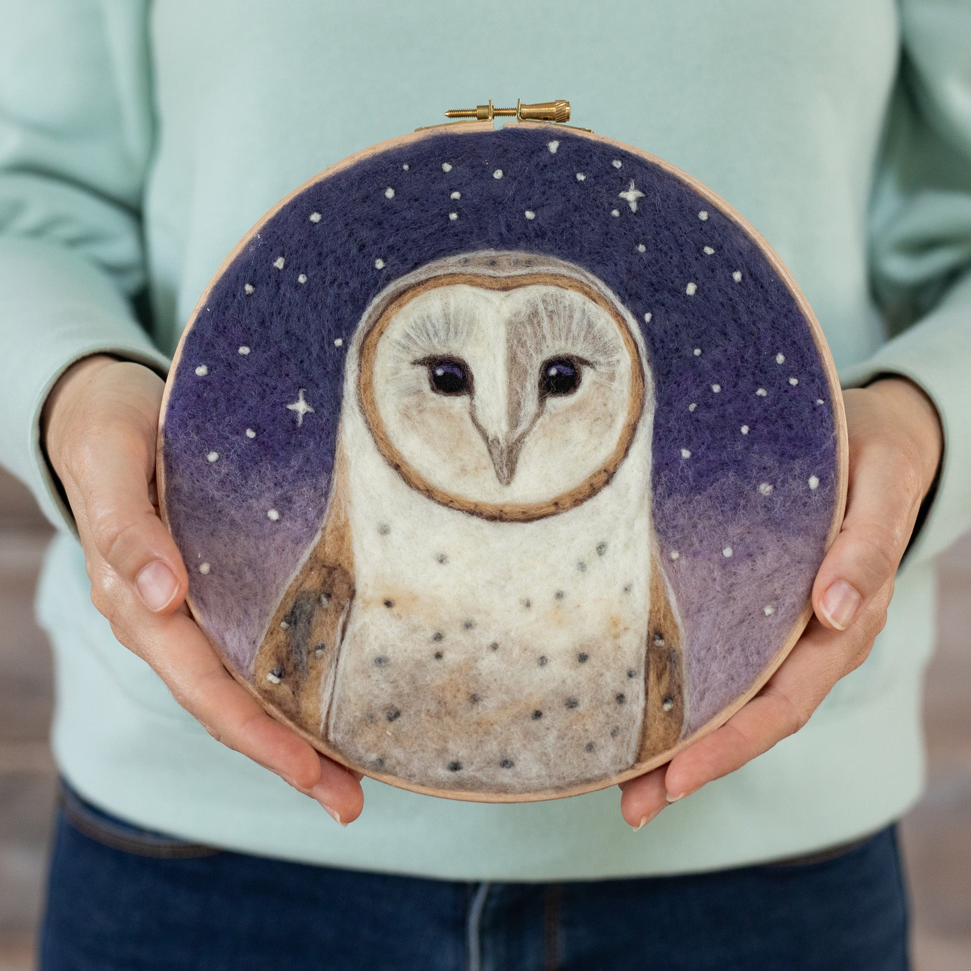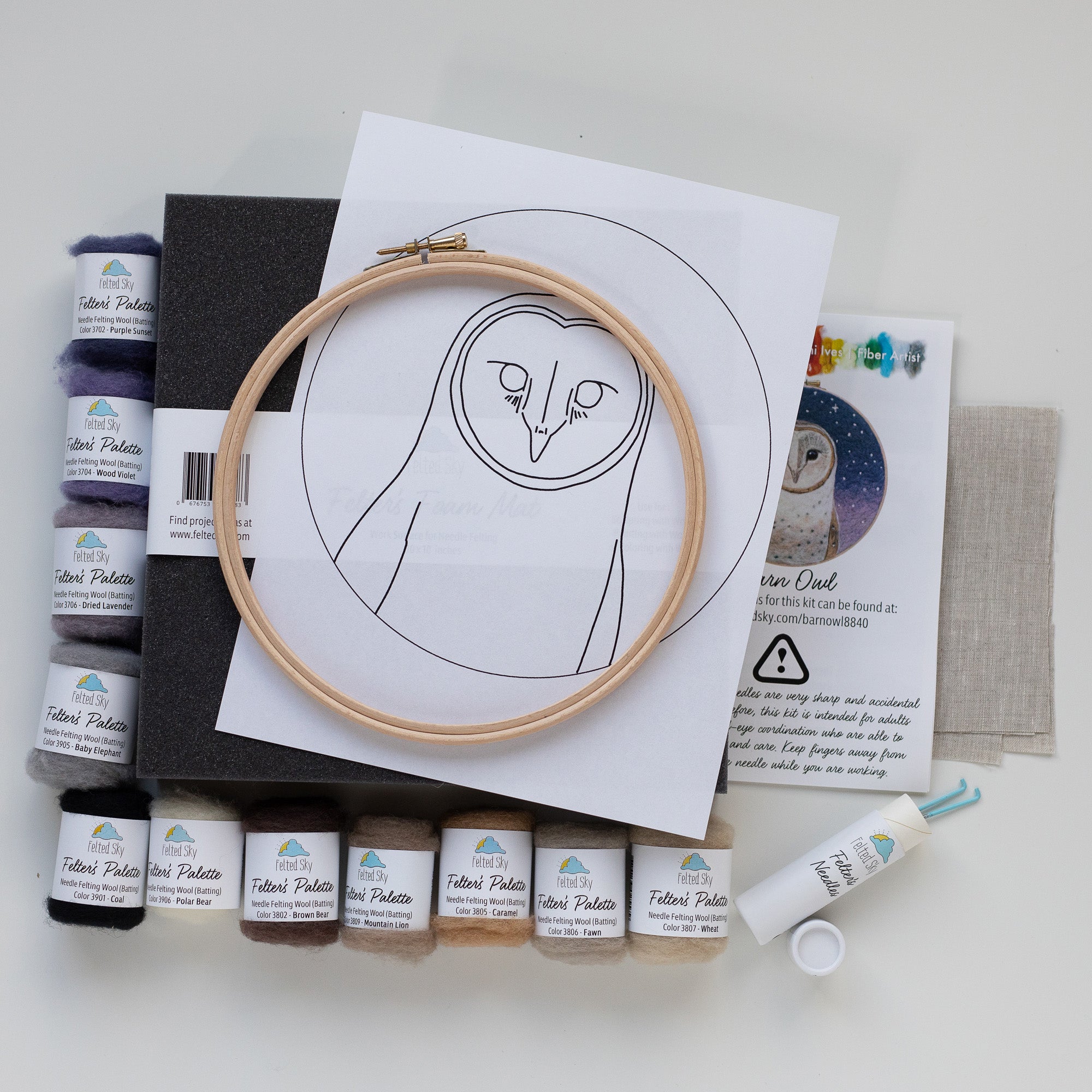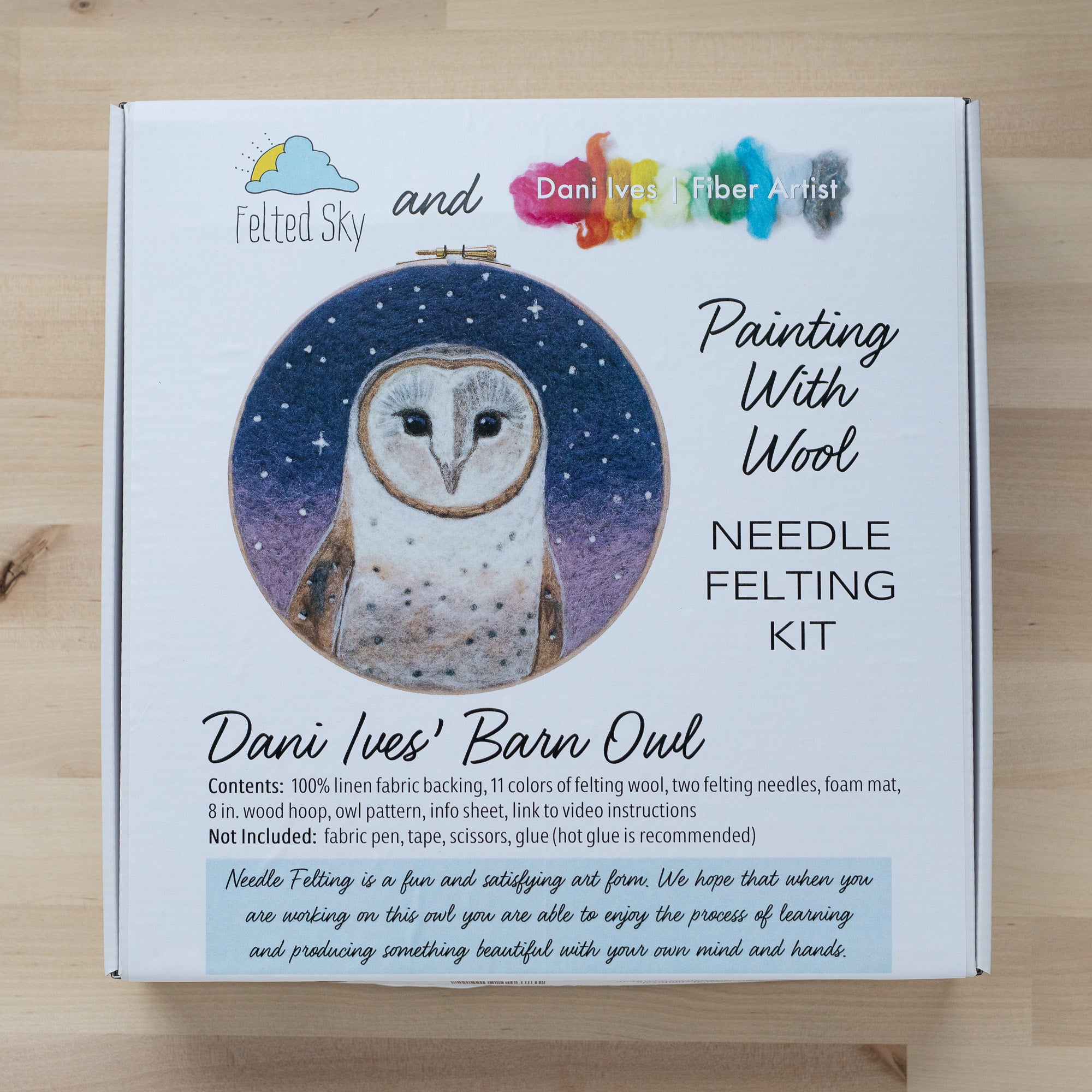 This is a wonderful kit by artist Dani Ives featuring a Barn Owl in an 8 in. hoop! This is an intermediate kit. We recommend having at least a little bit of flat needle felting experience before you tackle this project. Please note that unlike our other kits, there is not an instruction sheet. Instead you get an in-depth video tutorial taught by Dani.