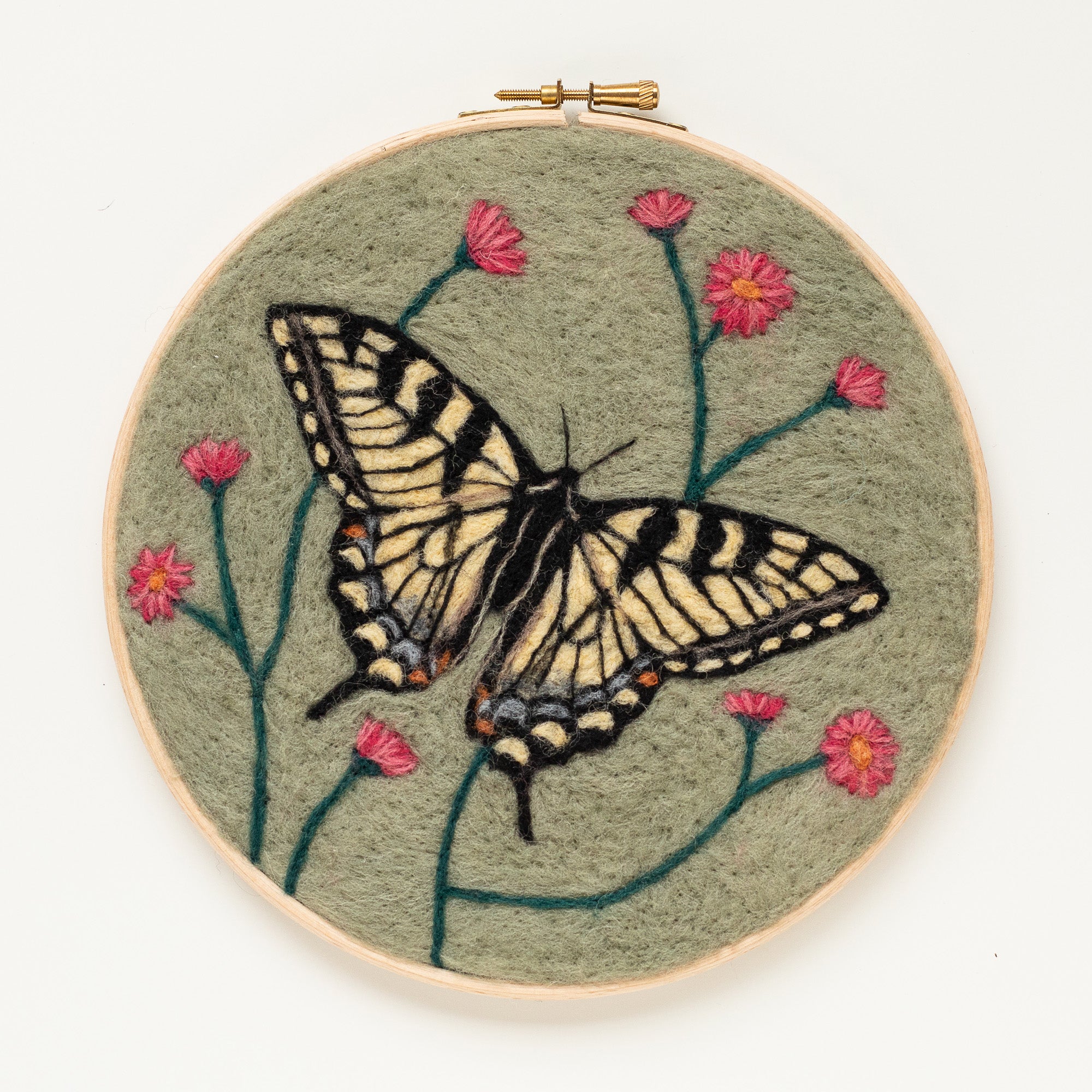 This is a wonderful kit by artist Dani Ives featuring a Yellow Swallowtail Butterfly in an 8 in. hoop! This is an intermediate kit. We recommend having at least a little bit of flat needle felting experience before you tackle this project. Please note that unlike our other kits, there is not an instruction sheet. Instead you get an in-depth video tutorial taught by Dani.