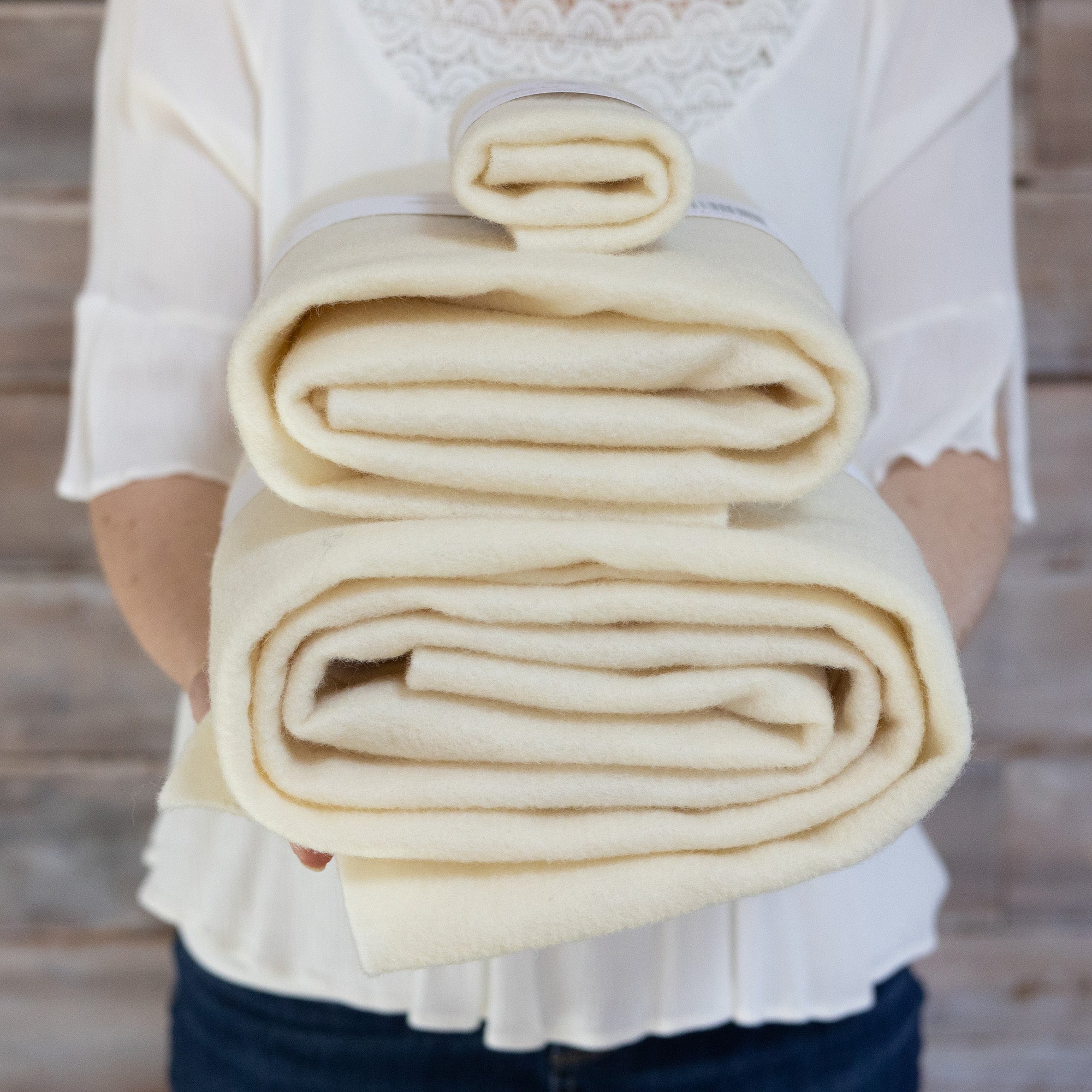 This is a very nice thin prefelt that is made in the USA from 100% wool. Prefelt stands for preliminary felt because it is felt that is not all the way felted. That means your needle will glide in very easily without as much effort as felting into craft felt.