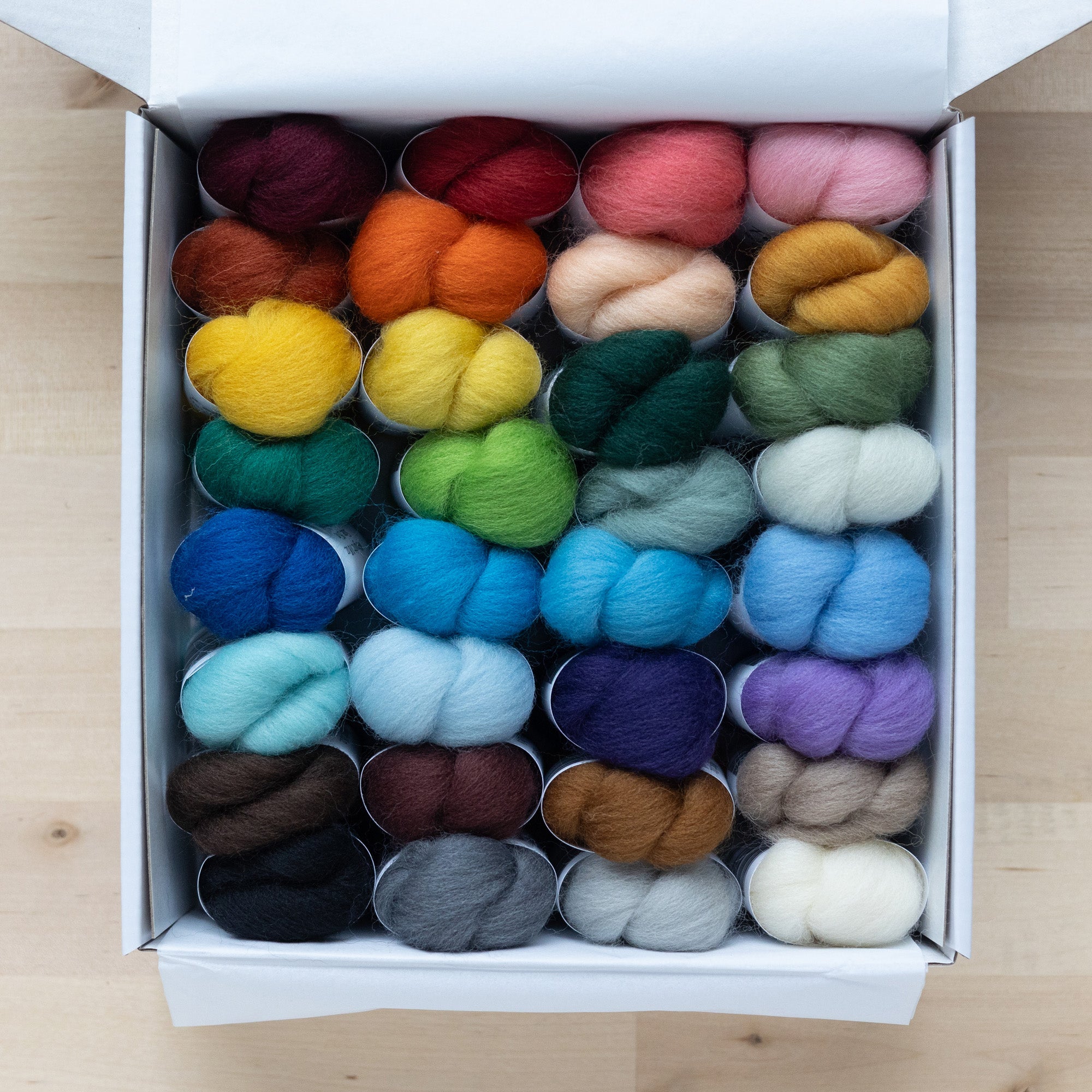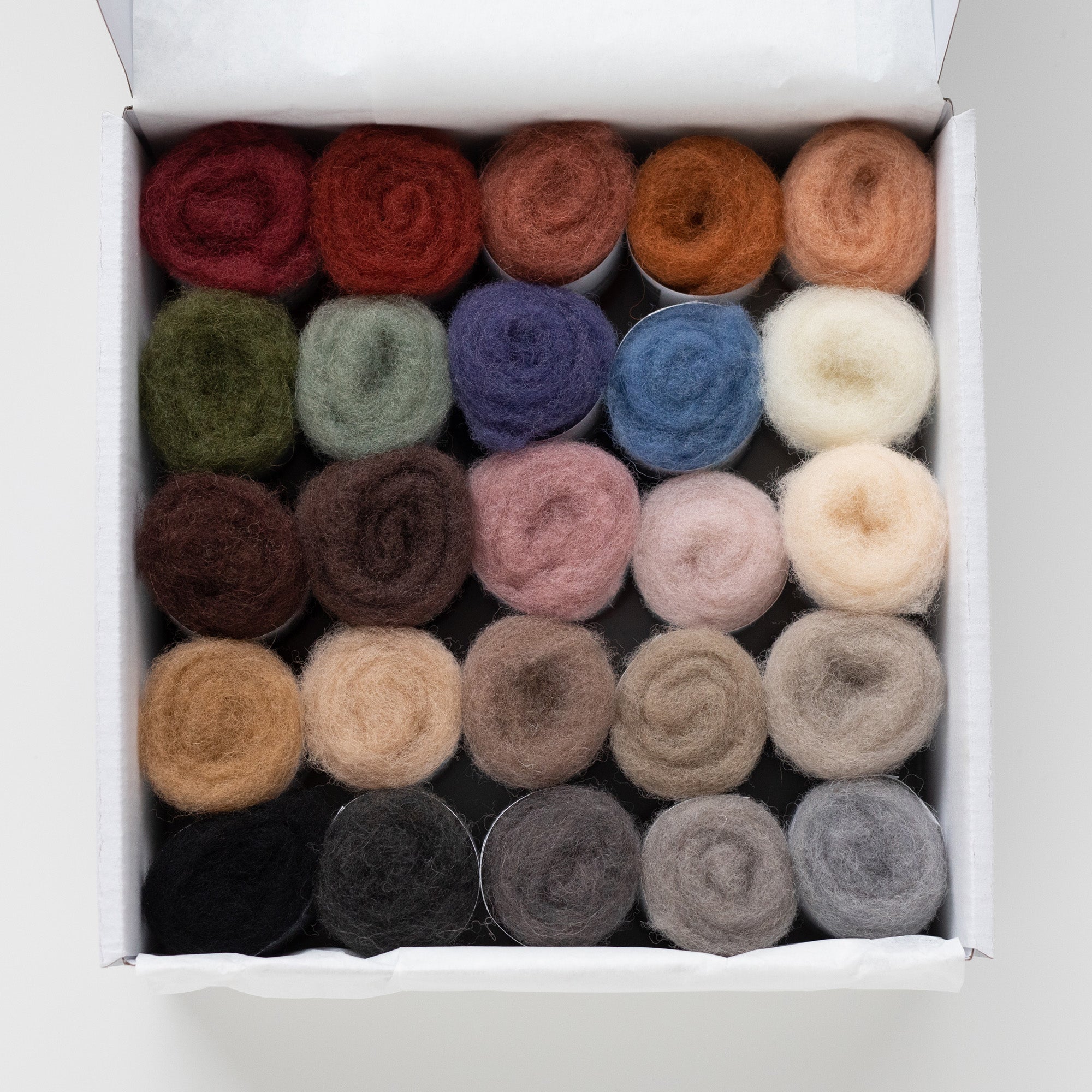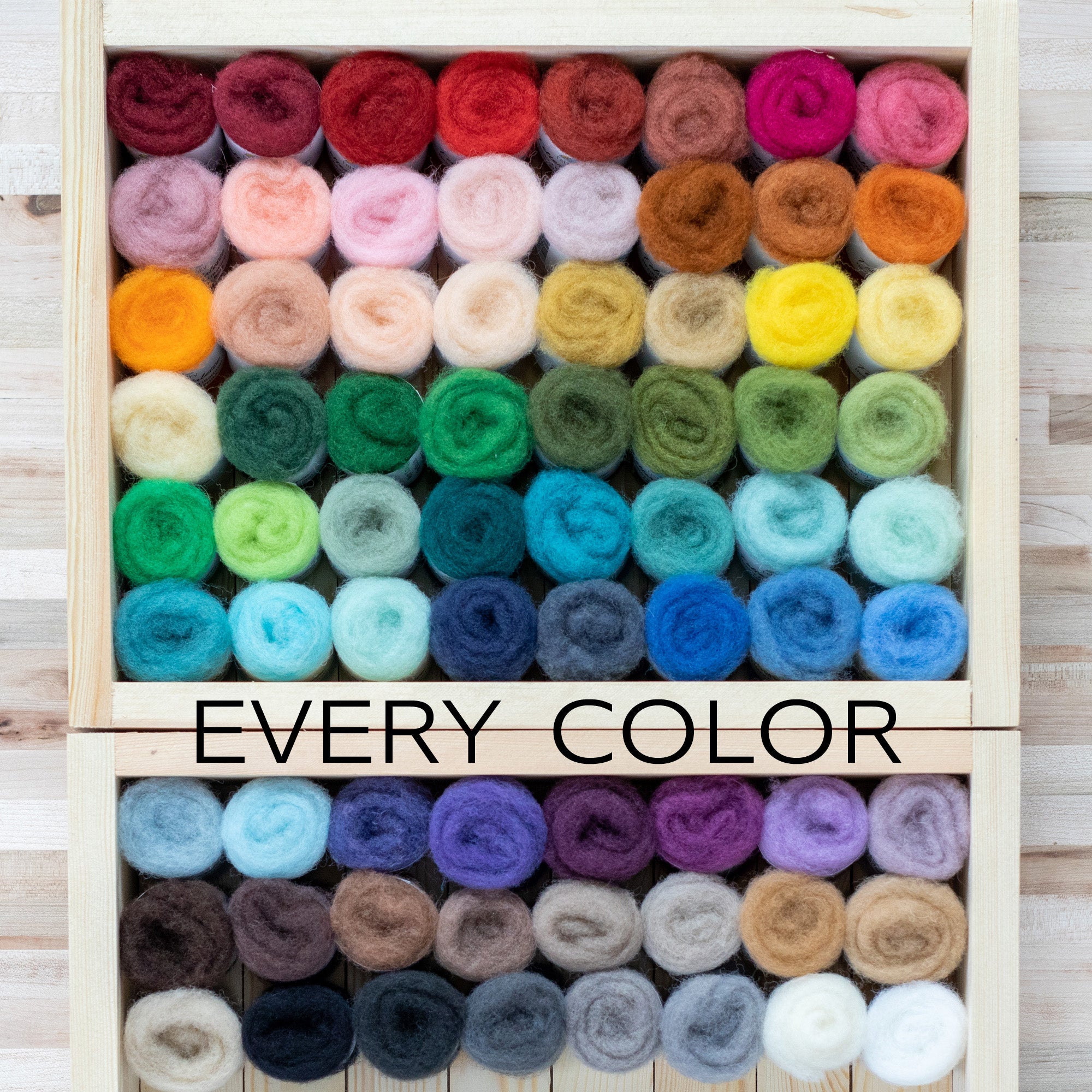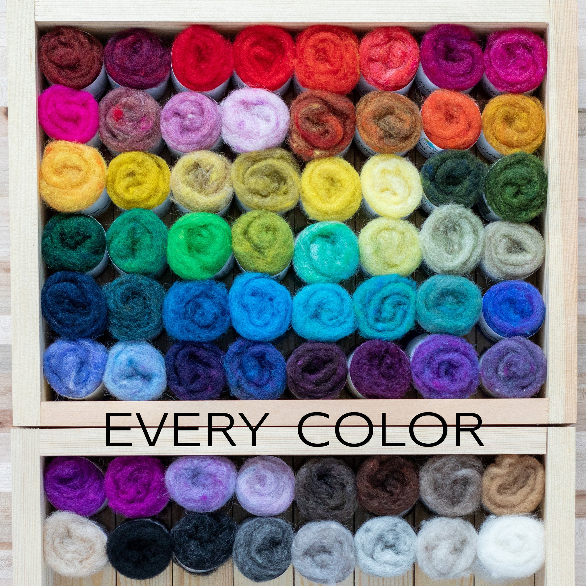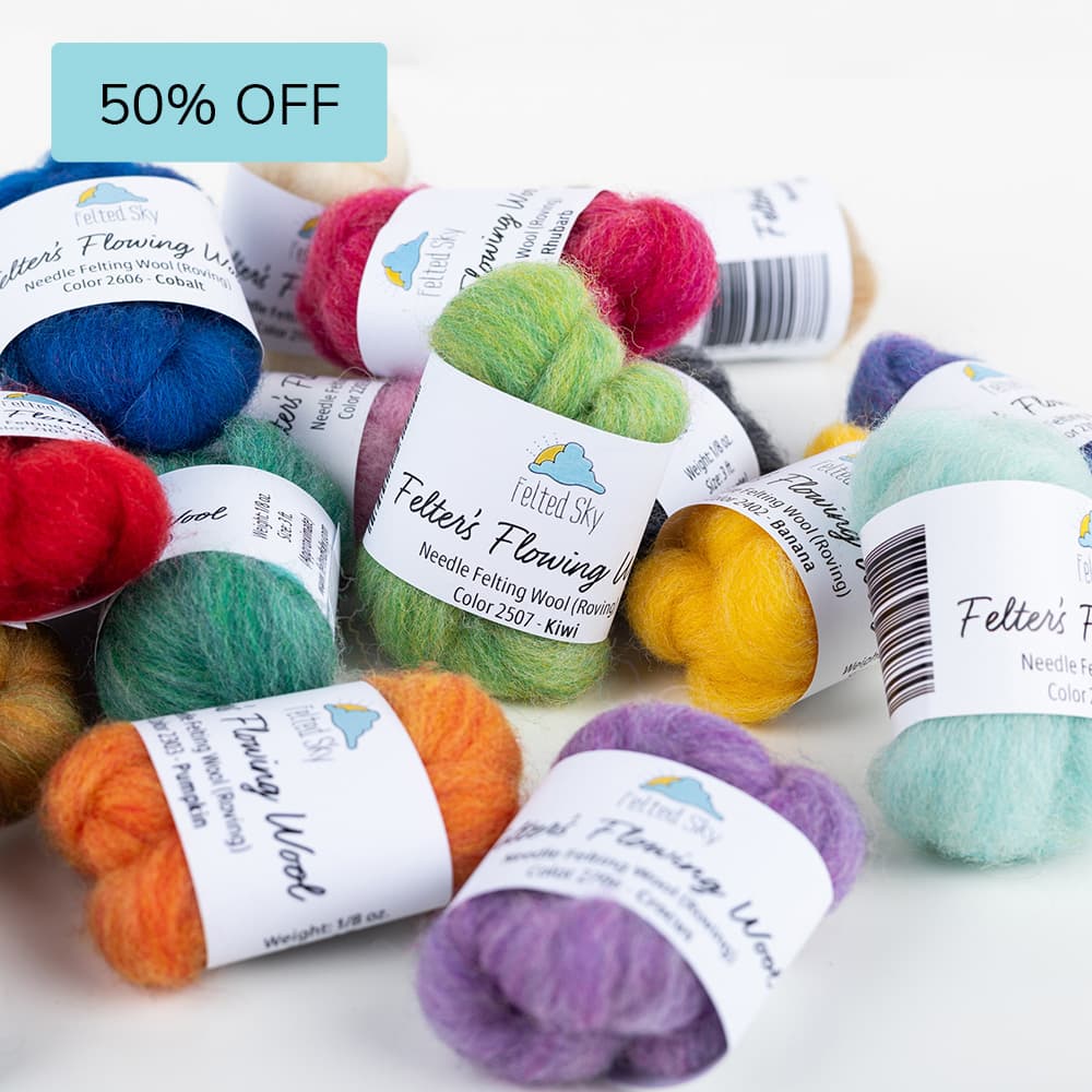 Using high quality felting wool can make a big difference in your felting experience and the beauty of your artwork! We currently carry three types of our favorite dyed felting wool + core wool. A fourth type, Felter's Flowing Wool, is on Clearance. Our wool colors can be purchased in an 1/8 oz. size (the same size that is used in our kits) or in a 1 oz. size.