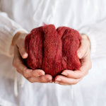 This is a beautiful and fluffy needle felting wool that comes in in gorgeous colors. It has a bit of texture to it, and almost all of the shades are heathered, with flecks of other colors running through them. We use this wool in many of our needle felting kits. It is particularly suited to becoming plants, trees, and little animals.
