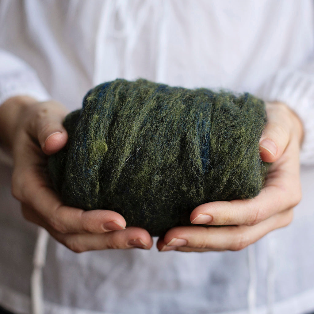 This is a beautiful and fluffy needle felting wool that comes in in gorgeous colors. It has a bit of texture to it, and almost all of the shades are heathered, with flecks of other colors running through them. We use this wool in many of our needle felting kits. It is particularly suited to becoming plants, trees, and little animals.