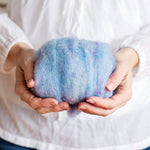 This is a beautiful and fluffy needle felting wool that comes in in gorgeous colors. It has a bit of texture to it, and almost all of the shades are heathered, with flecks of other colors running through them. We use this wool in many of our needle felting kits. It is particularly suited to becoming plants, trees, and little animals.