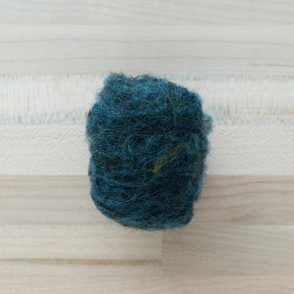 This is a beautiful and fluffy needle felting wool that comes in in gorgeous colors. It has a bit of texture to it, and almost all of the shades are heathered, with flecks of other colors running through them. We use this wool in many of our needle felting kits. It is particularly suited to becoming plants, trees, and little animals.