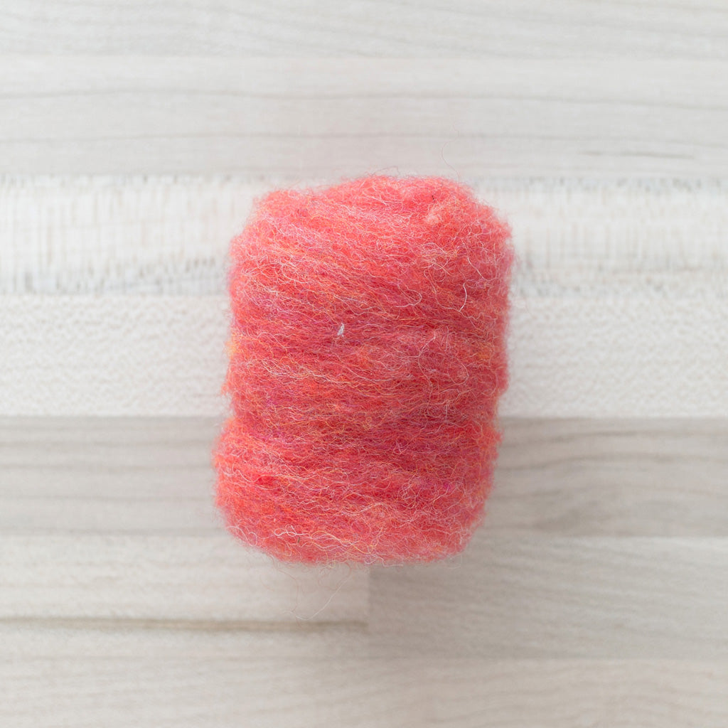 This is a beautiful and fluffy needle felting wool that comes in in gorgeous colors. It has a bit of texture to it, and almost all of the shades are heathered, with flecks of other colors running through them. We use this wool in many of our needle felting kits. It is particularly suited to becoming plants, trees, and little animals.