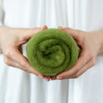 This needle felting wool batting is fairly soft, with a short staple length and hardly any vegetable matter. It is very uniform and really lovely to work with.
