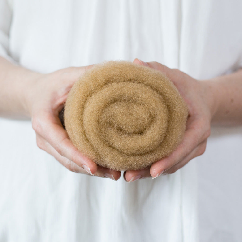 This needle felting wool batting is fairly soft, with a short staple length and hardly any vegetable matter. It is very uniform and really lovely to work with.