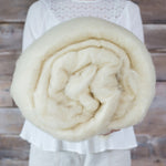 This is some very fluffy wonderful wool batting. It can be used in a wide range of applications and yes, it felts well! It is 100% natural US wool, in an off white/cream color that has been washed and carded. It still smells like sheep.