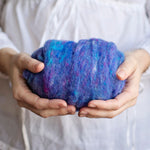 This is a beautiful and fluffy needle felting wool that comes in in gorgeous colors. It has a bit of texture to it, and almost all of the shades are heathered, with flecks of other colors running through them. We use this wool in many of our needle felting kits. It is particularly suited to becoming plants, trees, and little animals.