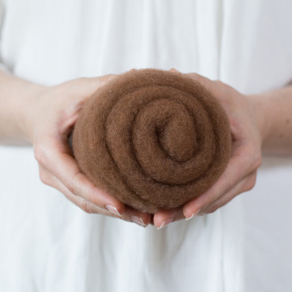 This needle felting wool batting is fairly soft, with a short staple length and hardly any vegetable matter. It is very uniform and really lovely to work with.