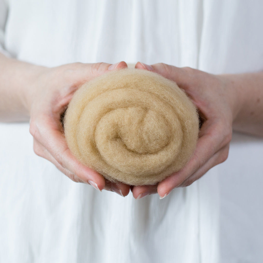 This needle felting wool batting is fairly soft, with a short staple length and hardly any vegetable matter. It is very uniform and really lovely to work with.