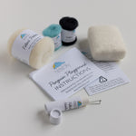 This needle felting kit includes everything needed to make two very cute tiny penguins and a "playground" - a slide and pool floating on a wool iceberg. This is a great kit for adventurous beginners who want to learn how to make wool sculptures.