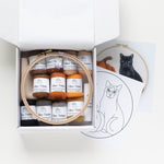 This is the supply box for Cat & Pumpkins - a fun fall-themed wool painting taught by Dani Ives.
